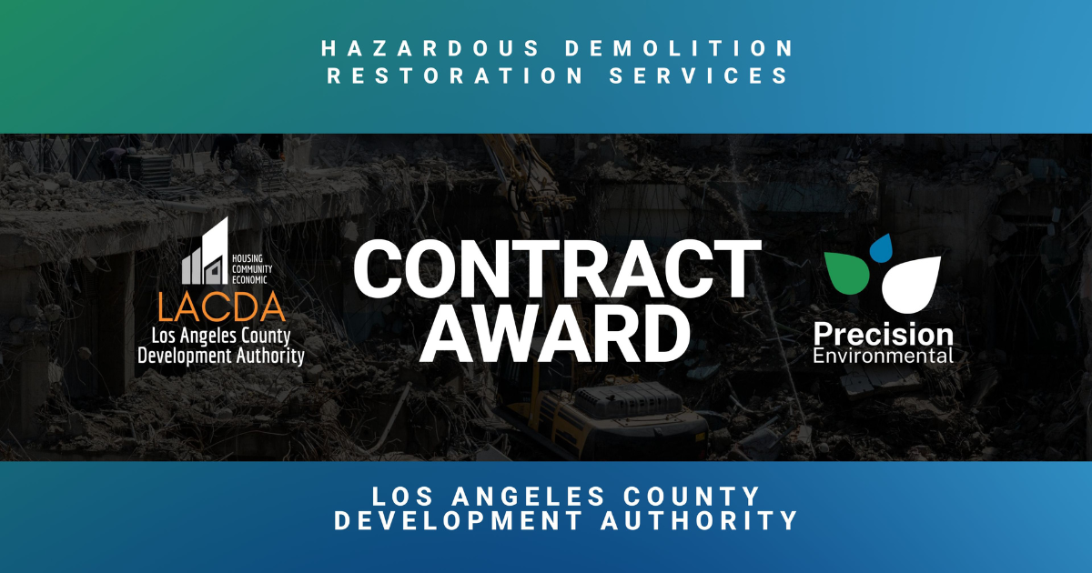 This award reflects Precision Environmental’s proven expertise in handling complex environmental challenges, including asbestos, lead, mold, and water damage mitigation. With a strong operational foundation and rapid-response capabilities, the team is well-positioned to support LACDA in addressing both routine and emergency project needs.
